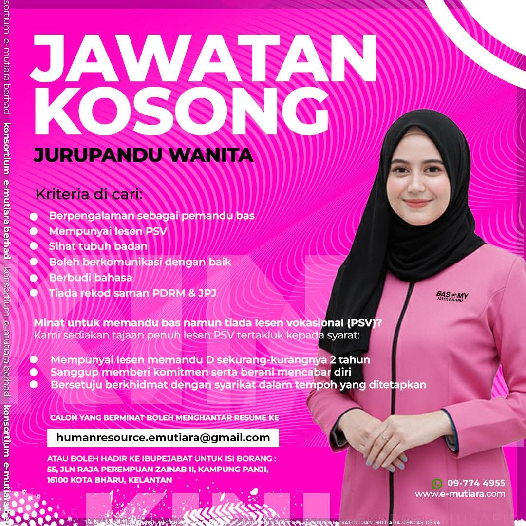 JAWATAN KOSONG – JURUPANDU BAS WANITA BAS.MY KOTA BHARU