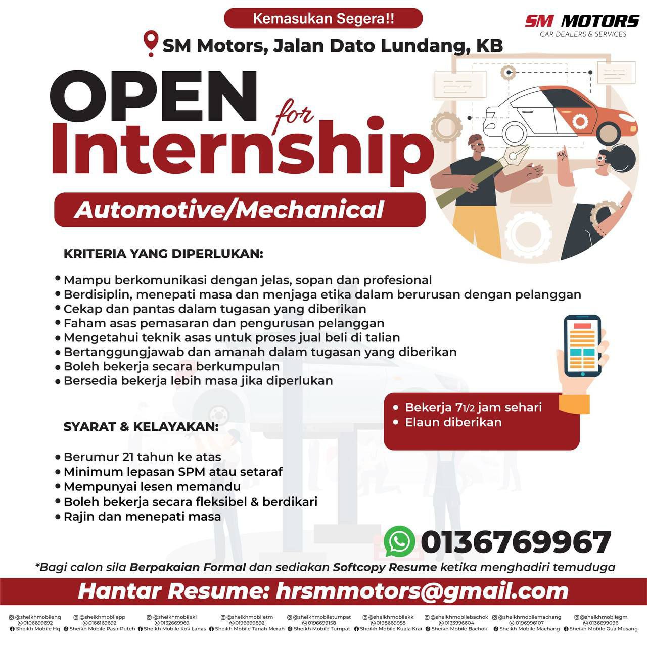 Hantar resume ke: hrsmmotors@gmail.com