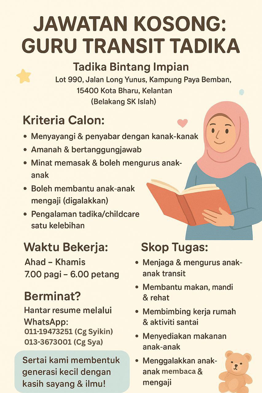 * Berpengalaman di tadika/childcare diberi keutamaan